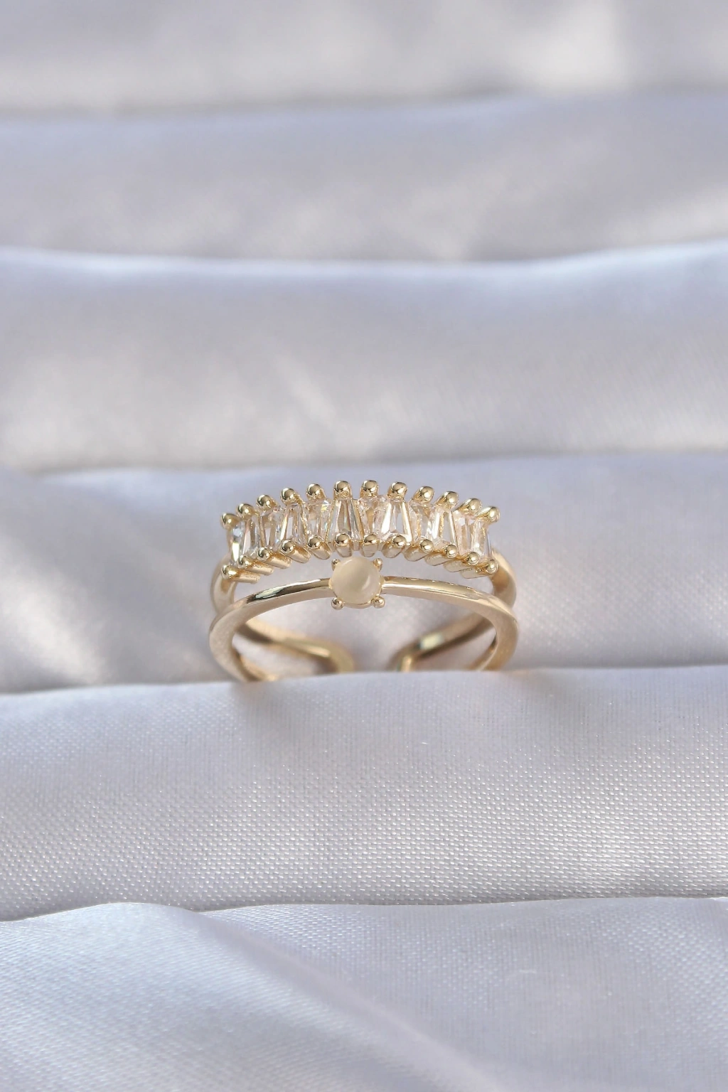 Erb Pirinç Gold Renk Zirkon Taşlı Baget Su Yolu Model Ayarlanabilir Yüzük
