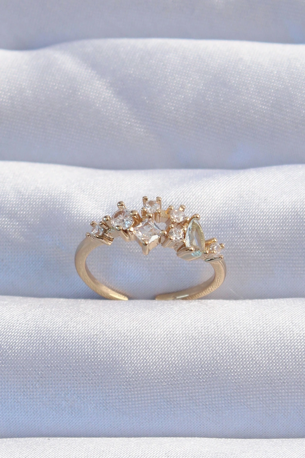 Erb Pirinç Gold Renk Zirkon Taşlı Damla Detay Ayarlanabilir Yüzük
