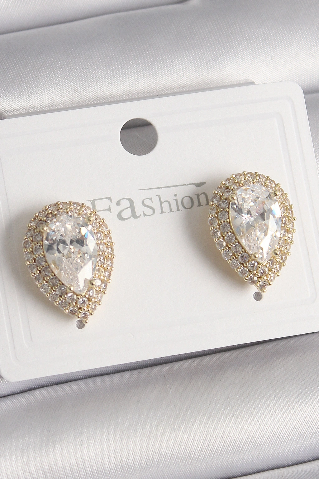 Erb Pirinç Gold Renk Zirkon Taşlı Damla Model Kadın Küpe