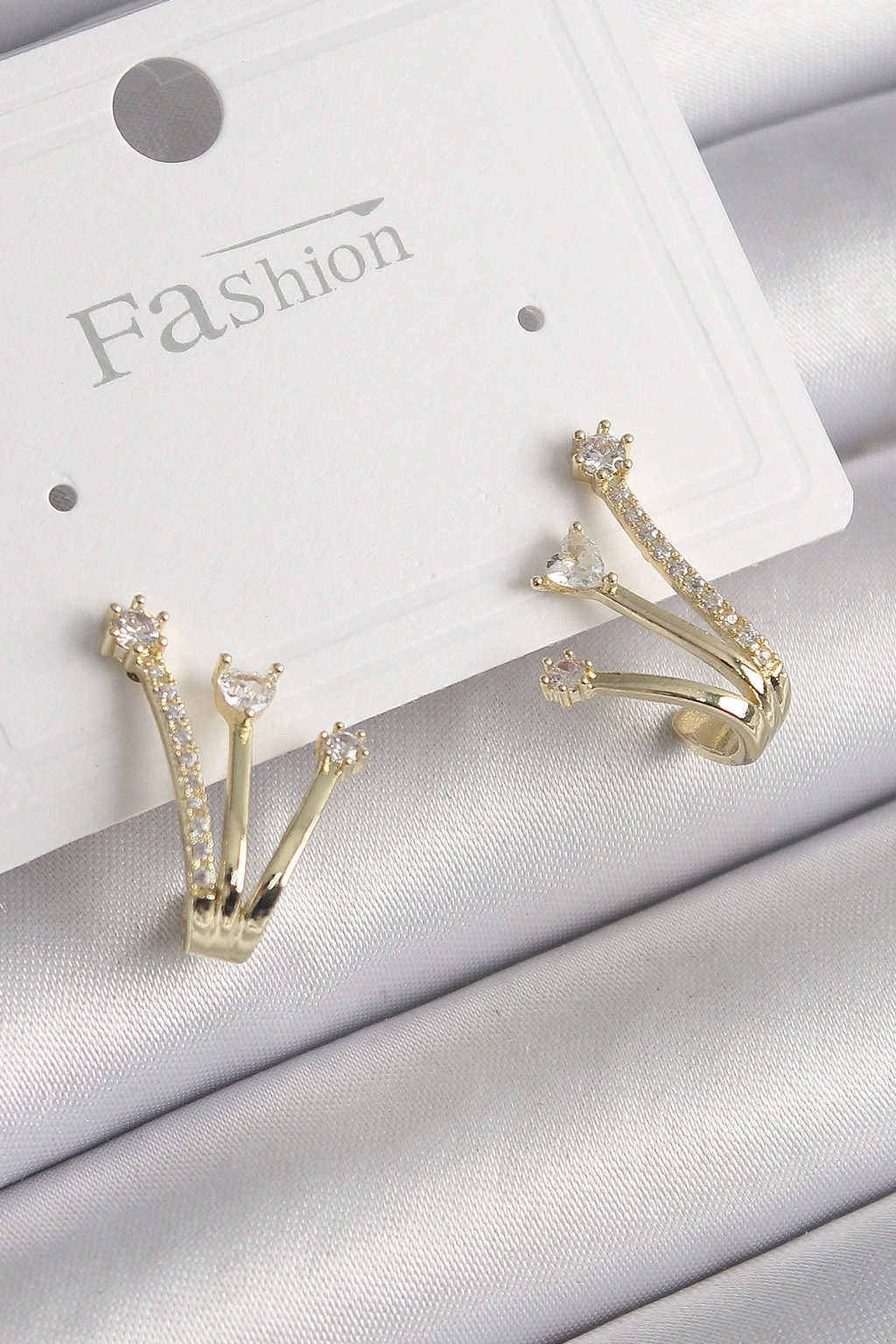 Erb Pirinç Gold Renk Zirkon Taşlı Kadın Küpe