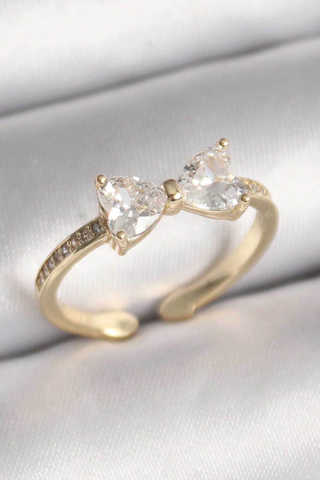 Erb Pirinç Gold Renk Zirkon Taşlı Kalp Fiyonk Model Kadın Yüzük