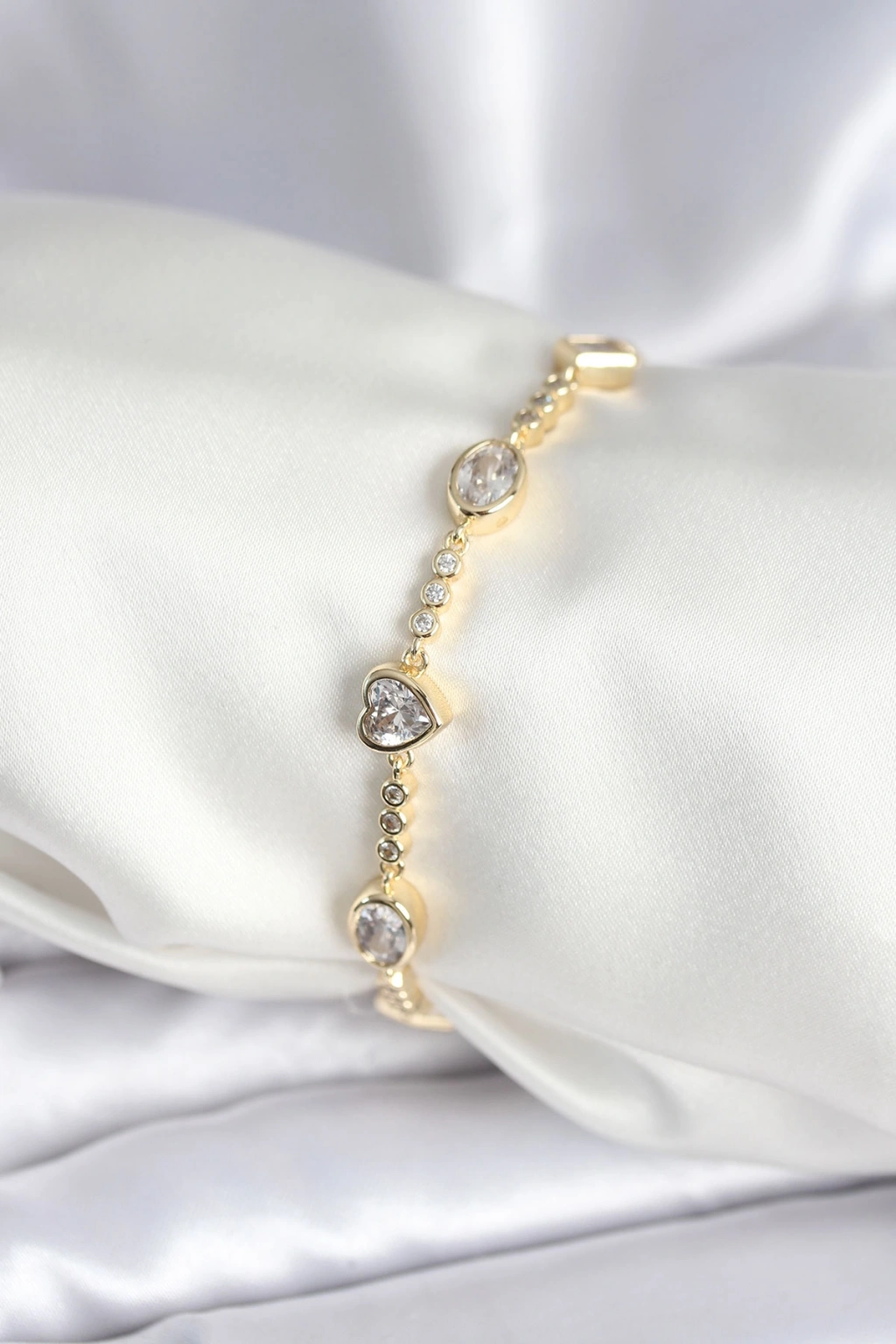 Erb Pirinç Gold Renk Zirkon Taşlı Kalpli Model Kadın Bileklik