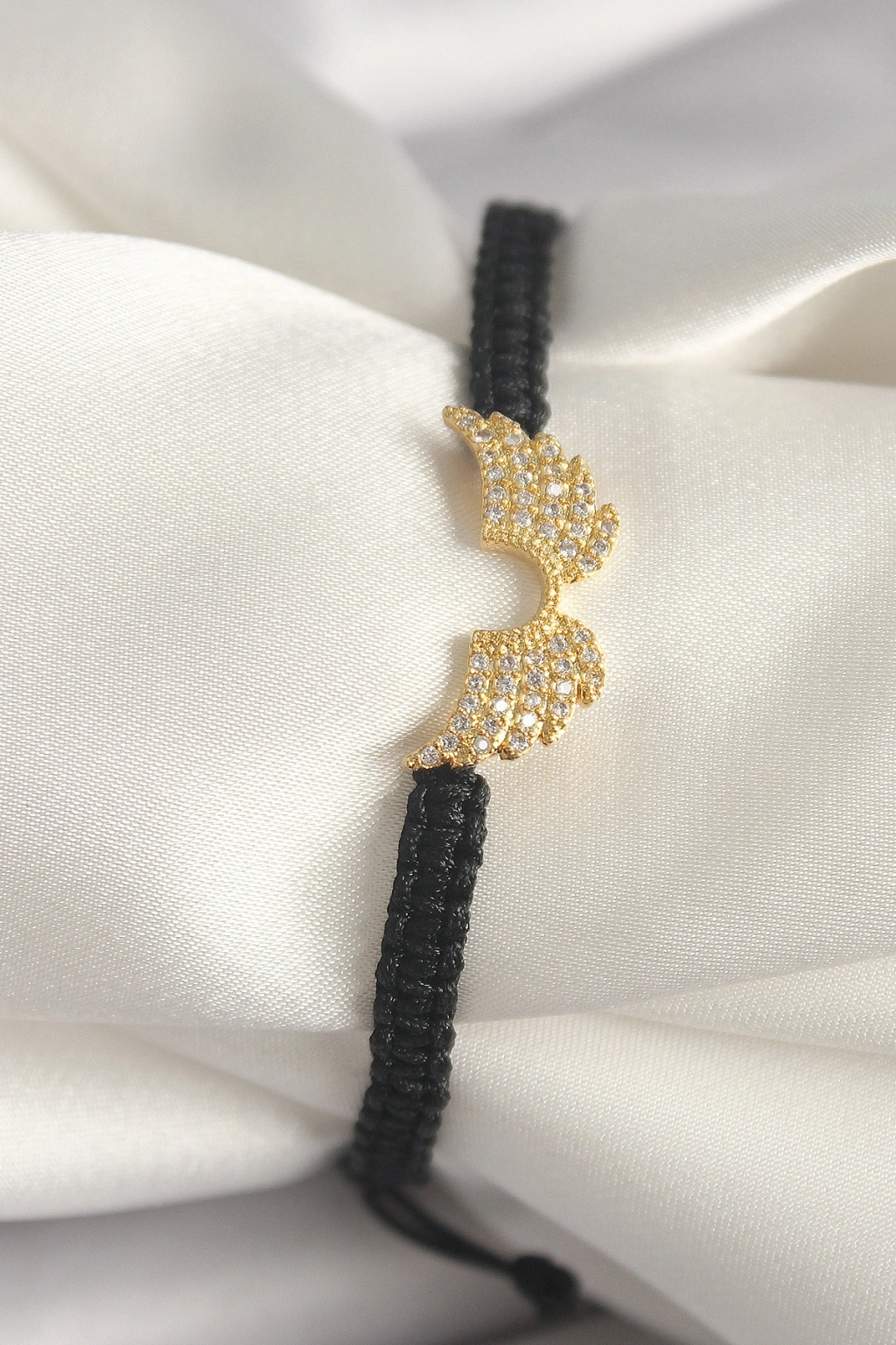 Erb Pirinç Gold Renk Zirkon Taşlı Kanat Figür Asansörlü Makrome Model Kadın Bileklik