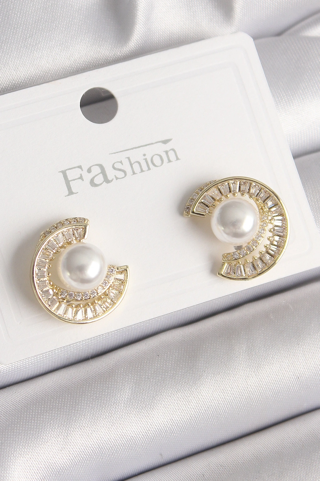 Erb Pirinç Gold Renk Zirkon Taşlı Salyangoz Model İnci Detay Kadın Küpe
