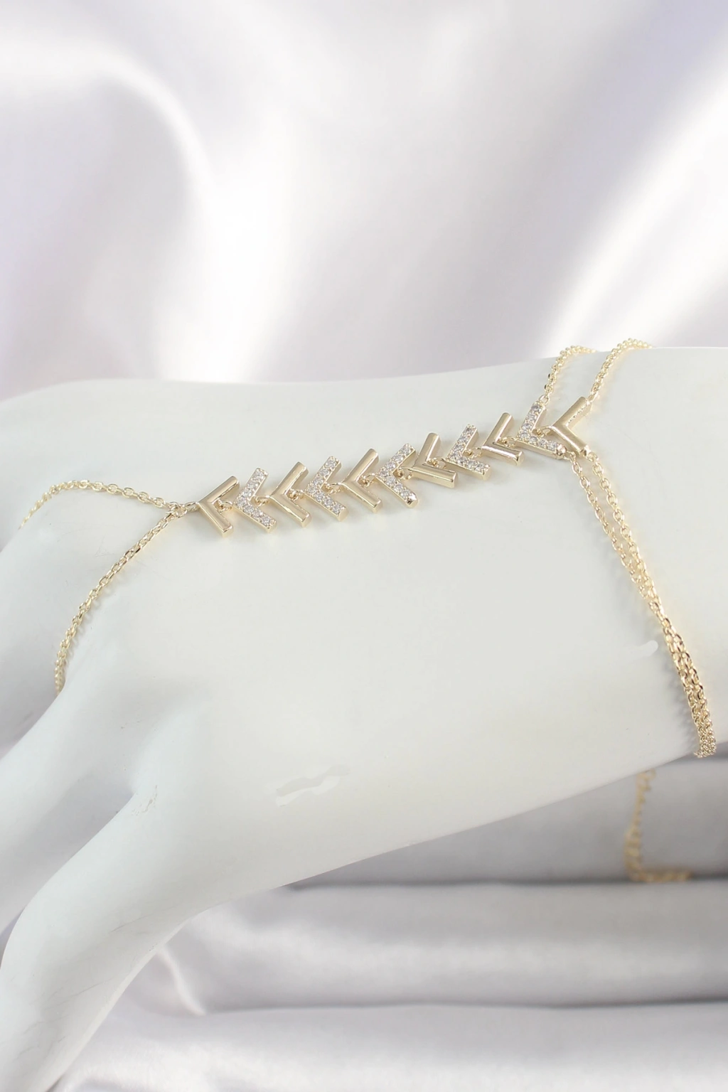 Erb Pirinç Gold Renk Zirkon Taşlı V Model Kadın Şahmeran