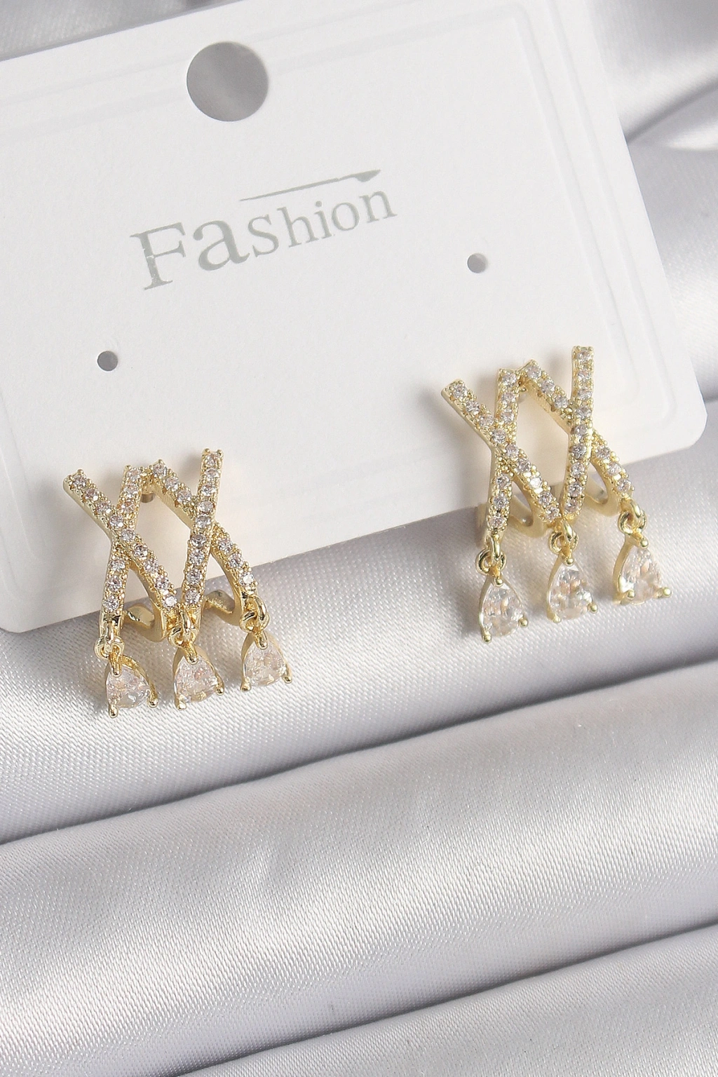 Erb Pirinç Gold Renk Zirkon Taşlı X Model Sallantı Detay Kadın Küpe