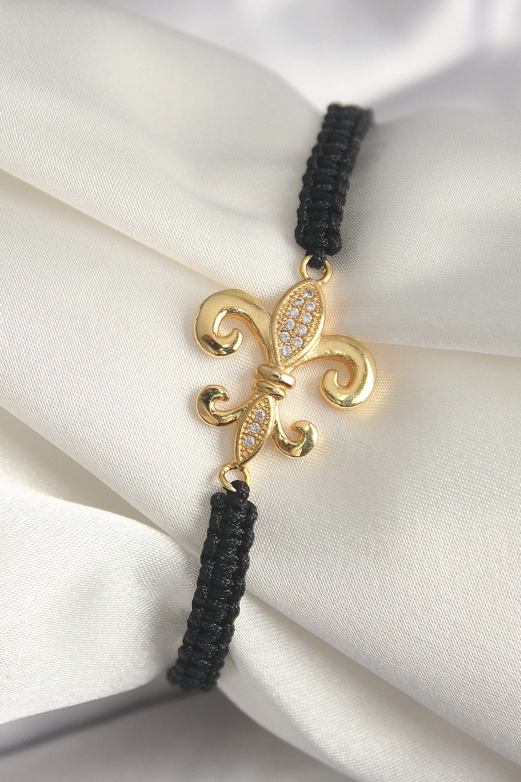 Erb Pirinç Gold Renk Zirkon Taşlı Zambak Figür Asansörlü Makrome Model Kadın Bileklik