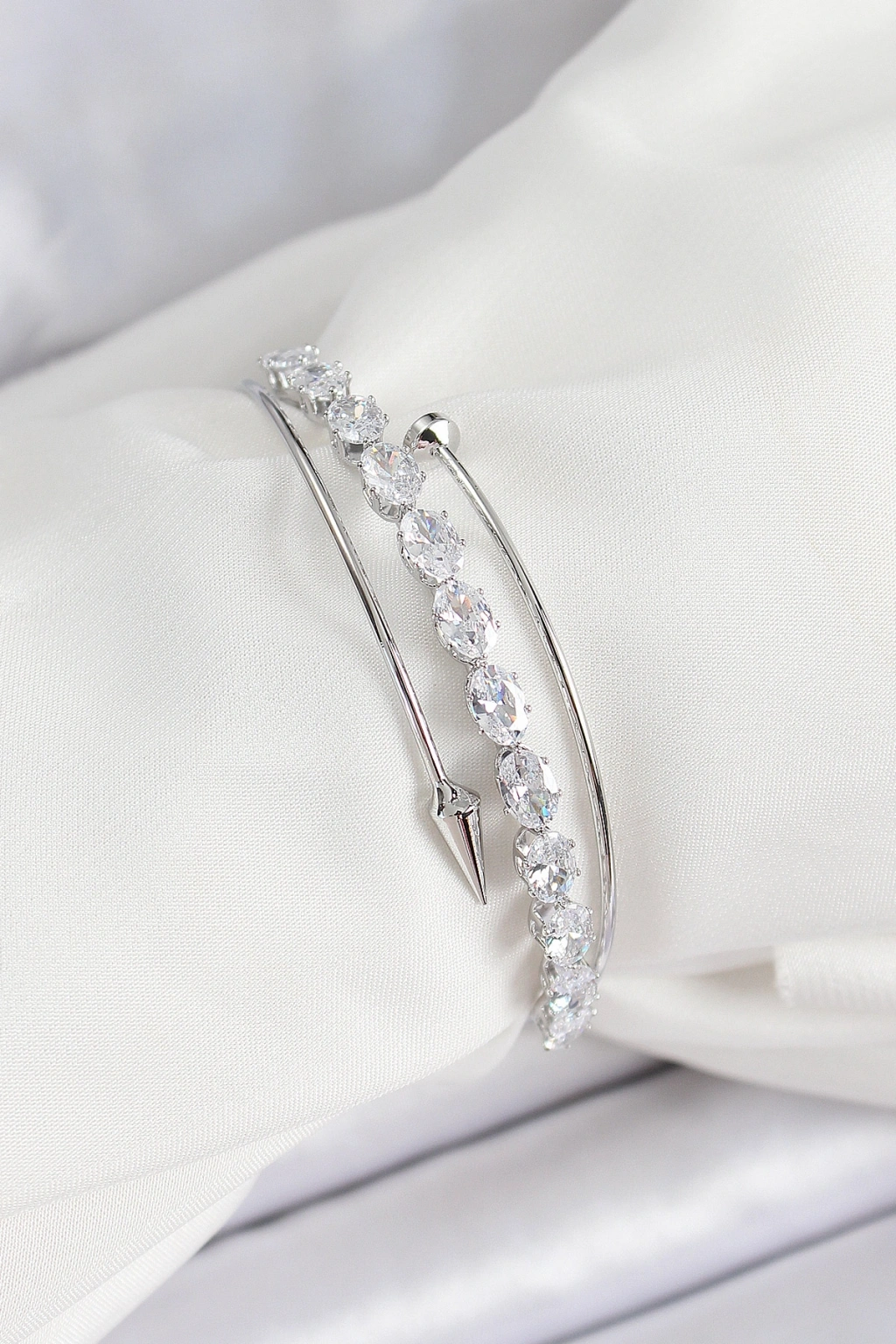 Erb Pirinç Gümüş Renk Arpa Zirkon Taşlı Kadın Bileklik