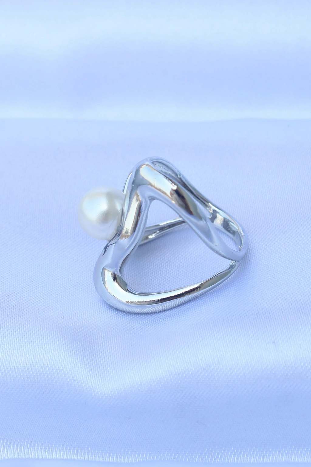 Erb Pirinç Gümüş Renk Ayarlanabilir İnci Taşlı Yüzük