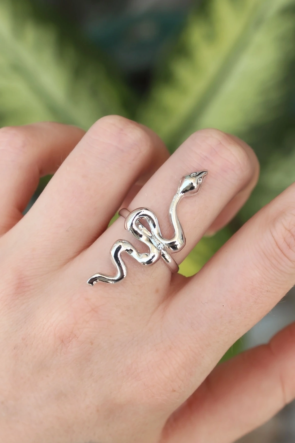 Erb Pirinç Gümüş Renk Ayarlanabilir Yılan Yüzük