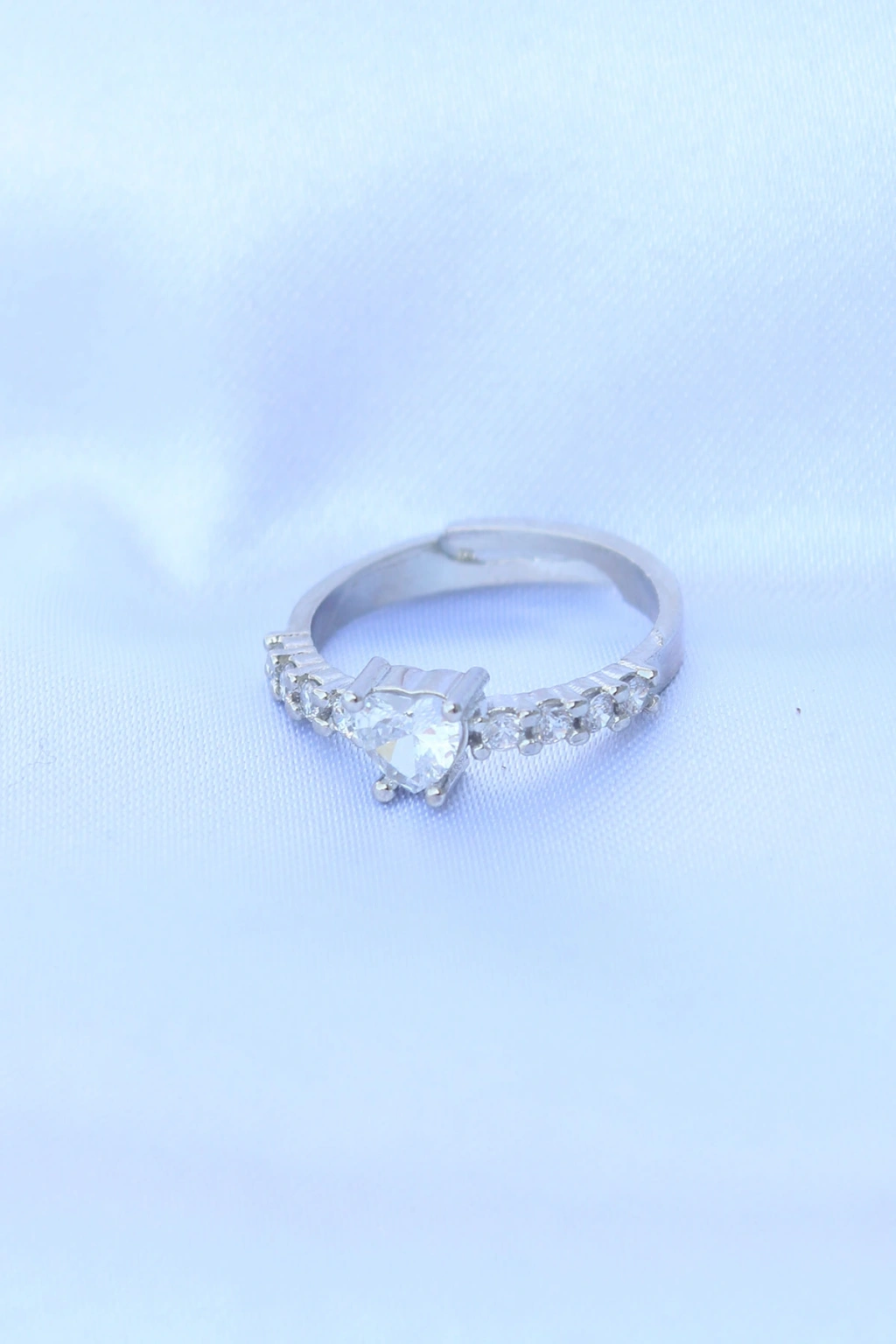 Erb Pirinç Gümüş Renk Ayarlanabilir Zirkon Taşlı Minimal Kalp Yüzük