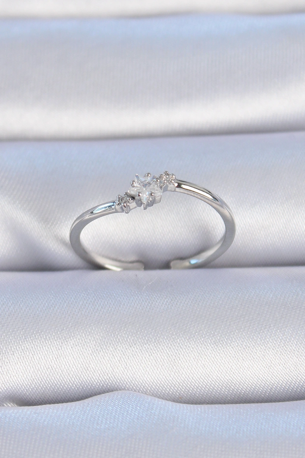 Erb Pirinç Gümüş Renk Çiçek Model Zirkon Taş Detay Kadın Yüzük