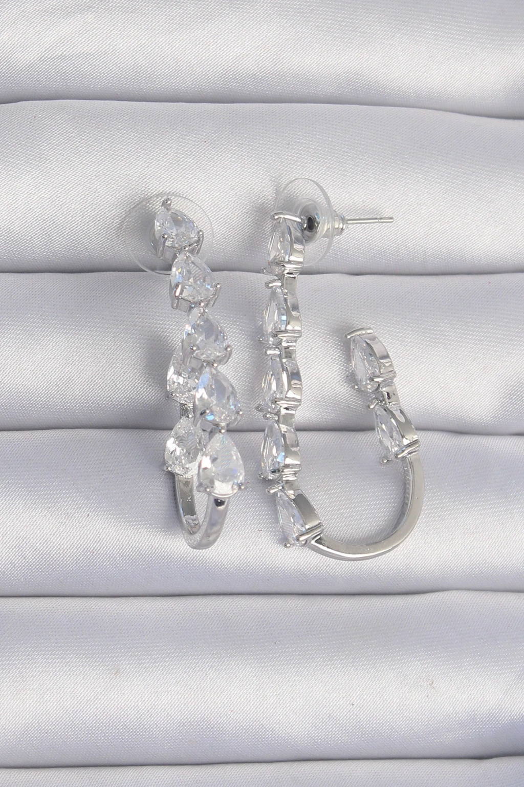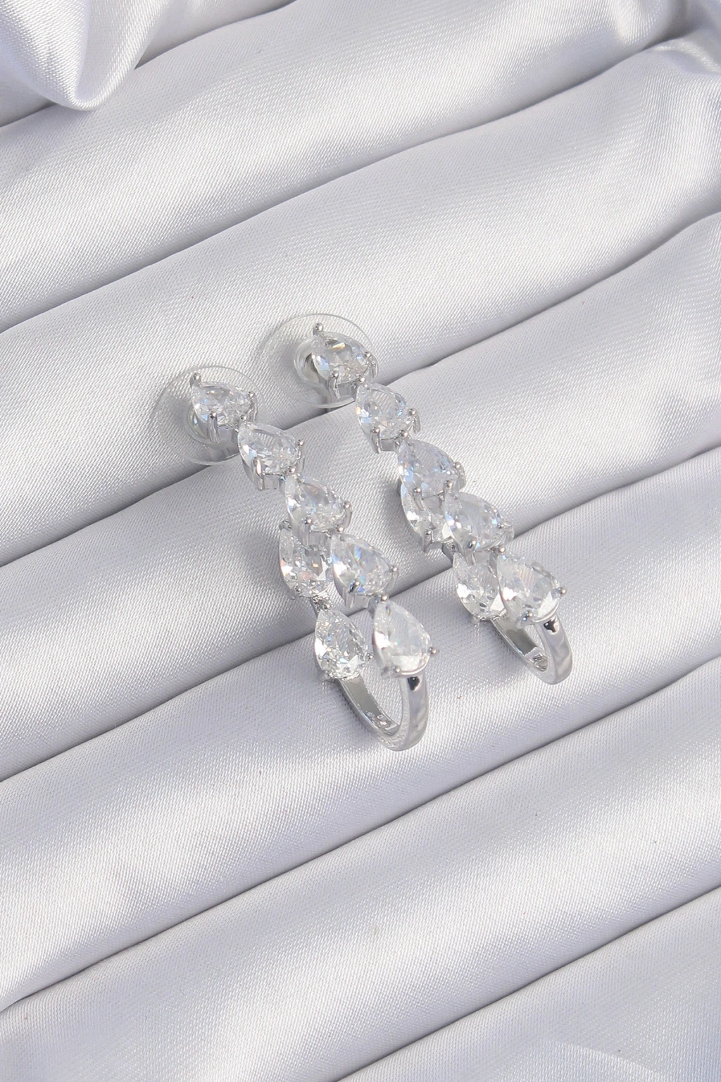 Erb Pirinç Gümüş Renk Damla Zirkon Taş Tasarımlı Küpe