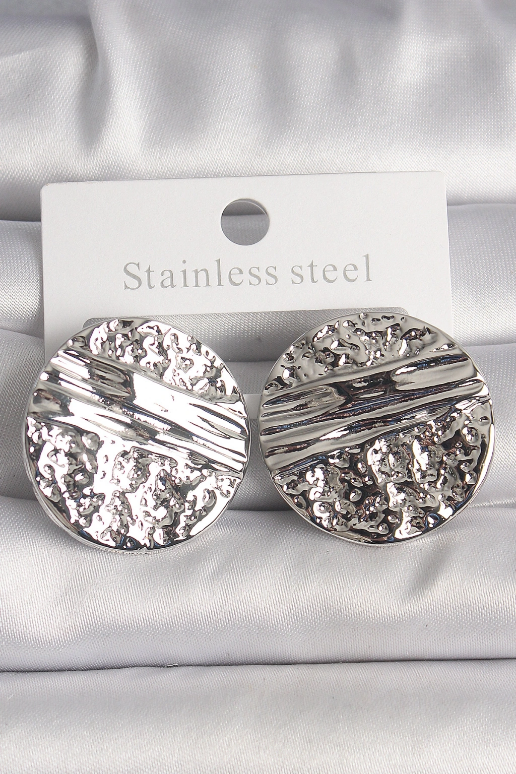 Erb Pirinç Gümüş Renk İşlemeli Daire Plaka Model Kadın Küpe
