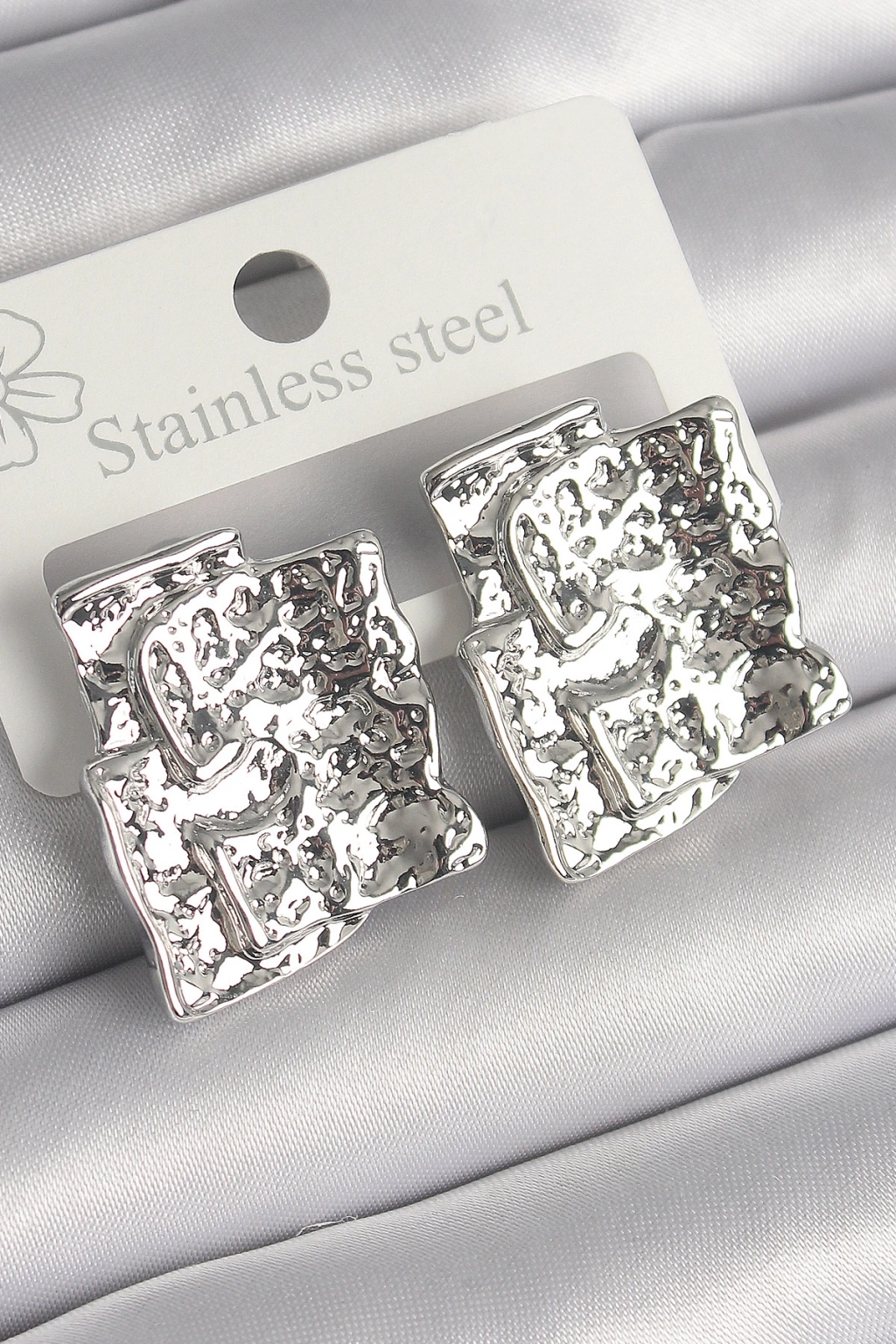 Erb Pirinç Gümüş Renk İşlemeli Kare Plaka Model Kadın Küpe