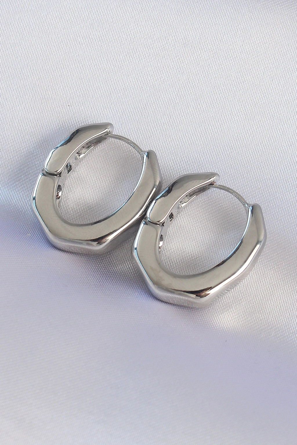 Erb Pirinç Gümüş Renk Kalın Kemik Model Küpe
