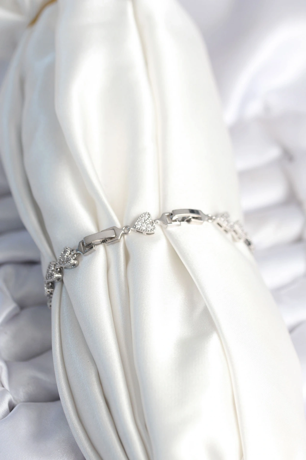 Erb Pirinç Gümüş Renk Kalp Model Kadın Bileklik