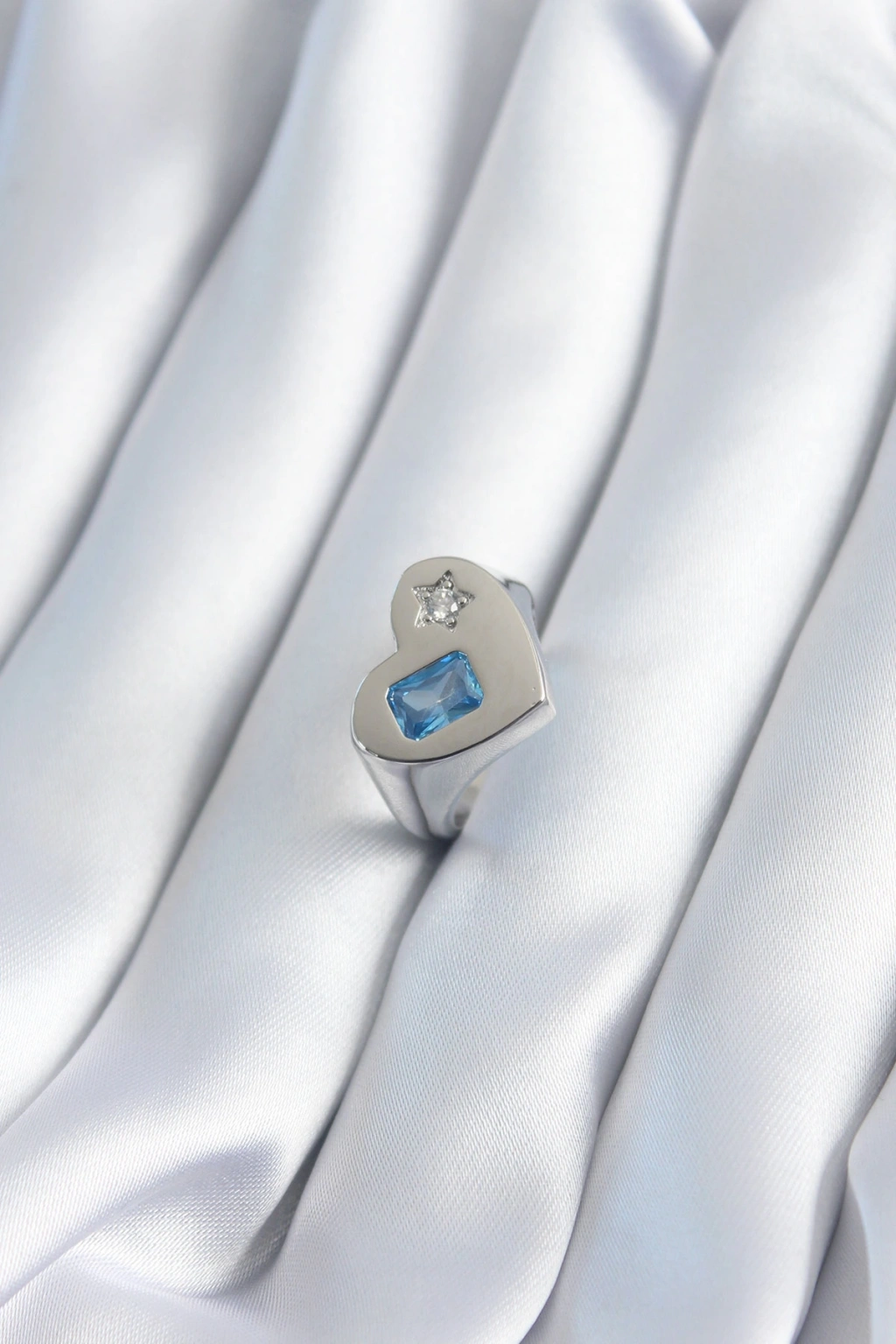 Erb Pirinç Gümüş Renk Kalp Model Yıldız Zirkon Taş Detay Kadın Yüzük
