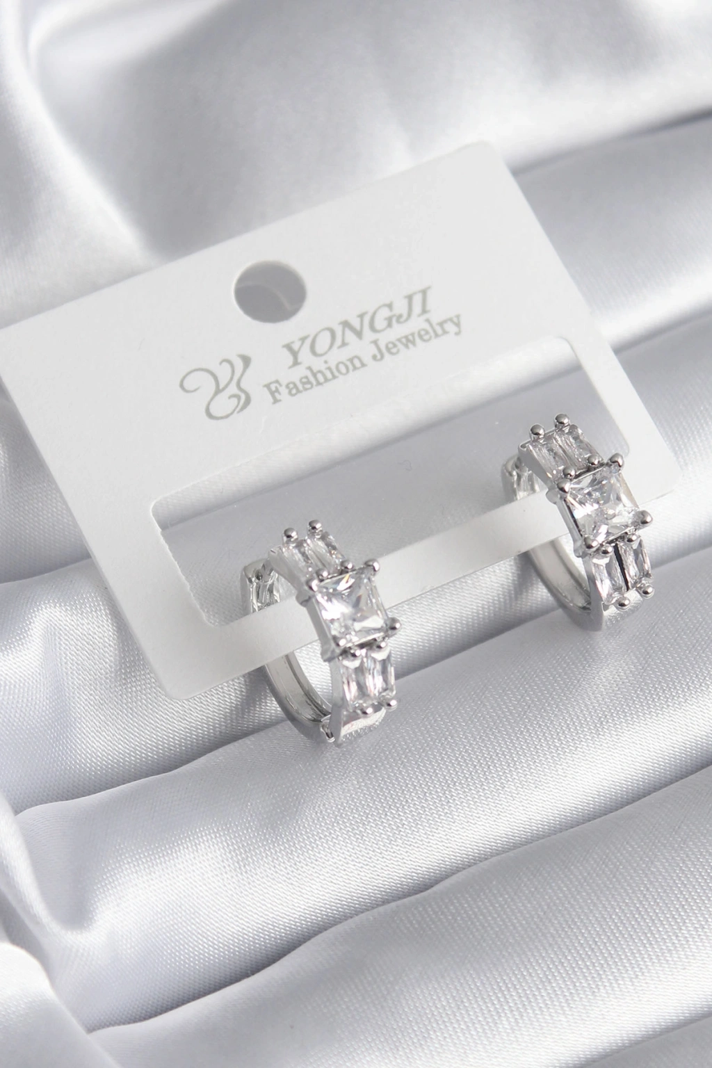 Erb Pirinç Gümüş Renk Kare Zirkon Taşlı Kadın Küpe