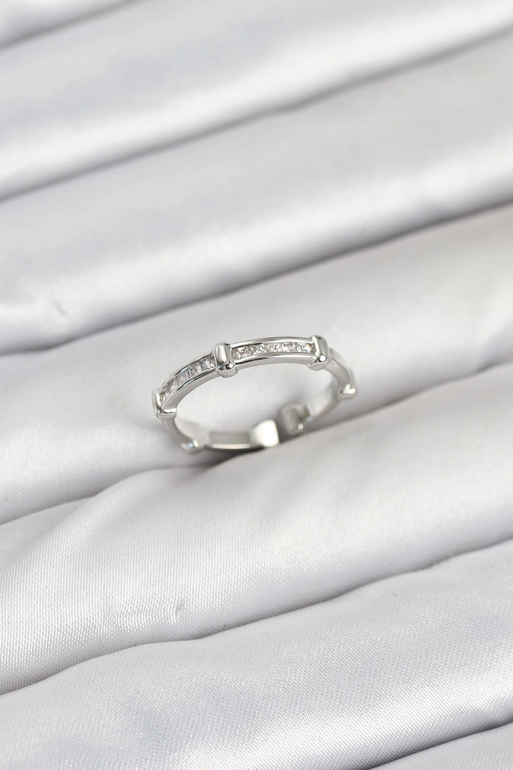 Erb Pirinç Gümüş Renk Kemik Model Zirkon Taşlı Kadın Yüzük
