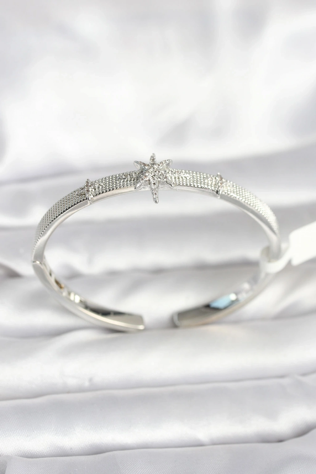 Erb Pirinç Gümüş Renk Kutup Yıldızı Model Kadın Kelepçe Bileklik