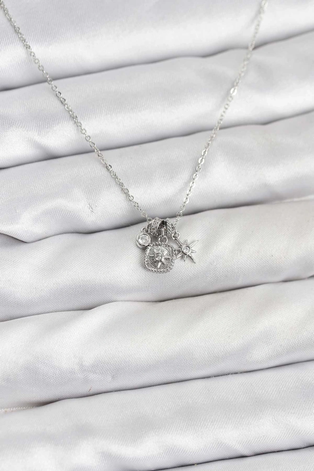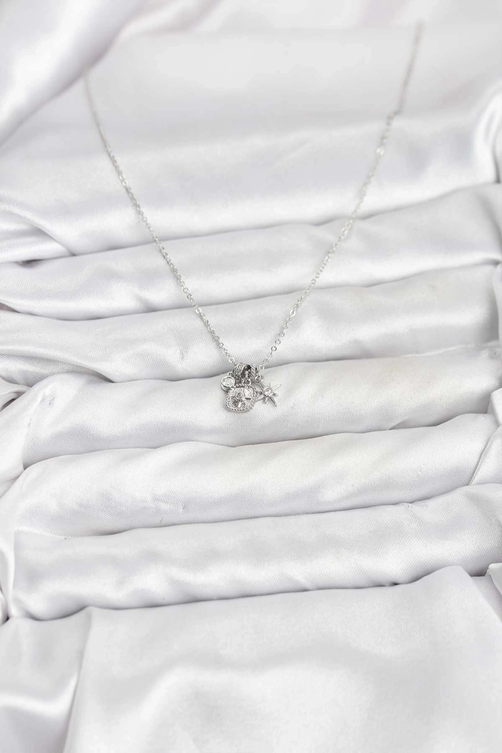 Erb Pirinç Gümüş Renk Minimal Charmlı Kadın Kolye