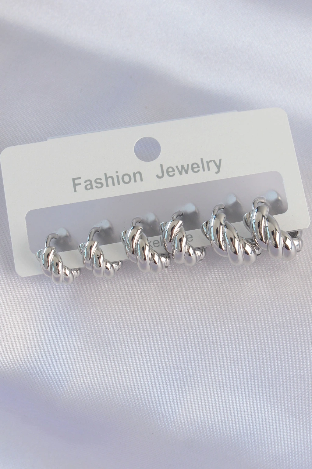 Erb Pirinç Gümüş Renk Minimal Tırtıklı Küpe Seti