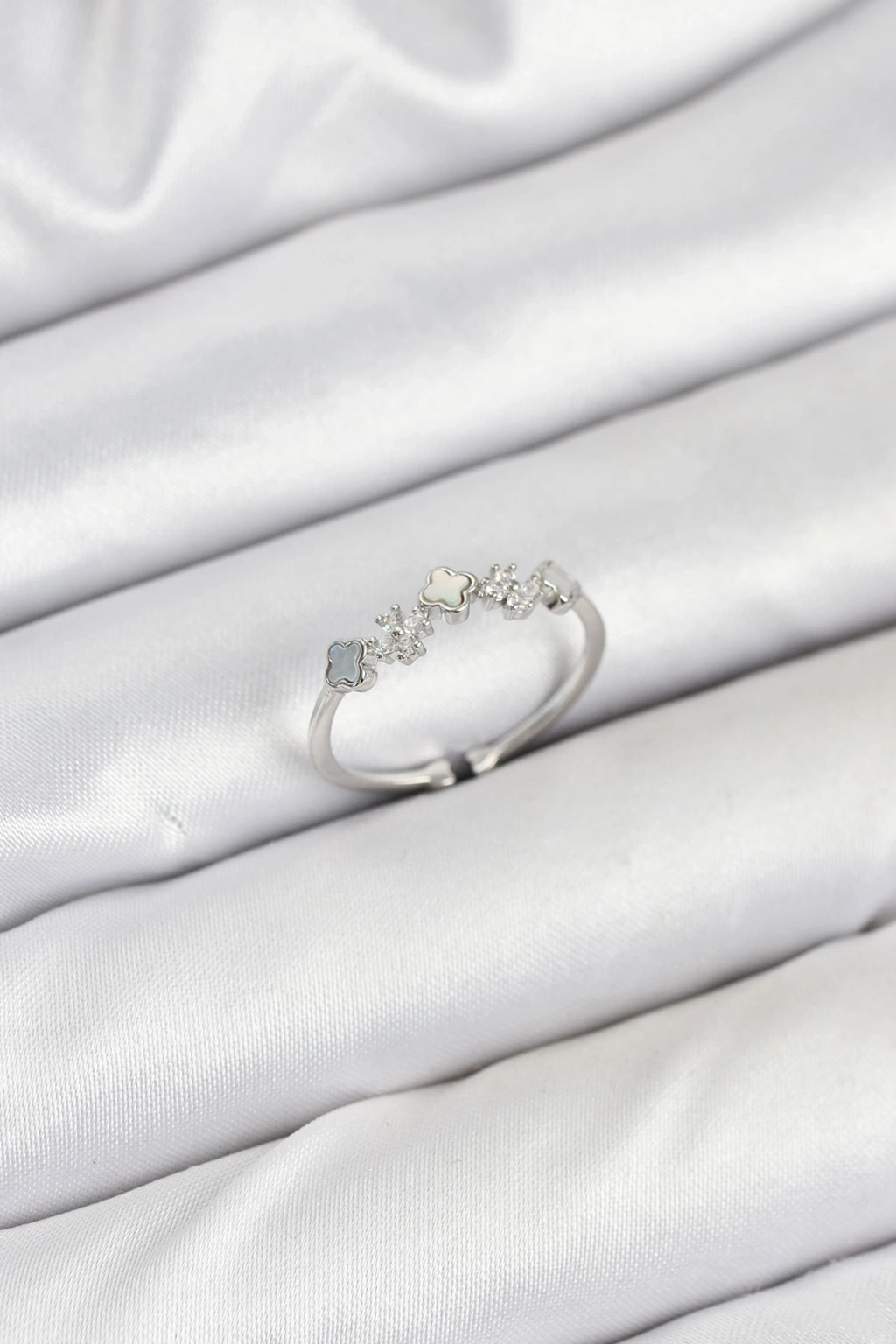 Erb Pirinç Gümüş Renk Minimal Yonca Detaylı Kadın Yüzük