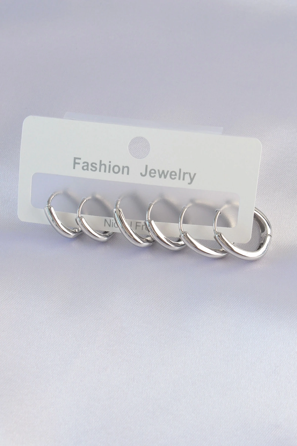 Erb Pirinç Gümüş Renk Oval Küpe Seti
