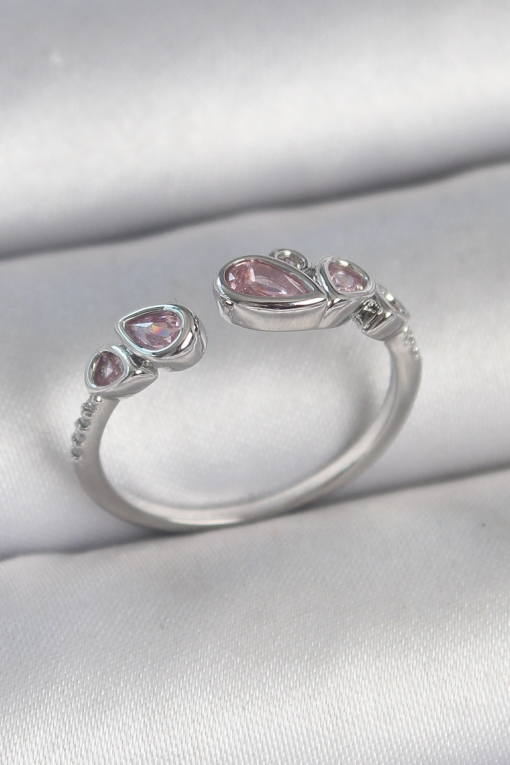 Erb Pirinç Gümüş Renk Pembe Damla Zirkon Taşlı Ayarlanabilir Model Kadın Yüzük