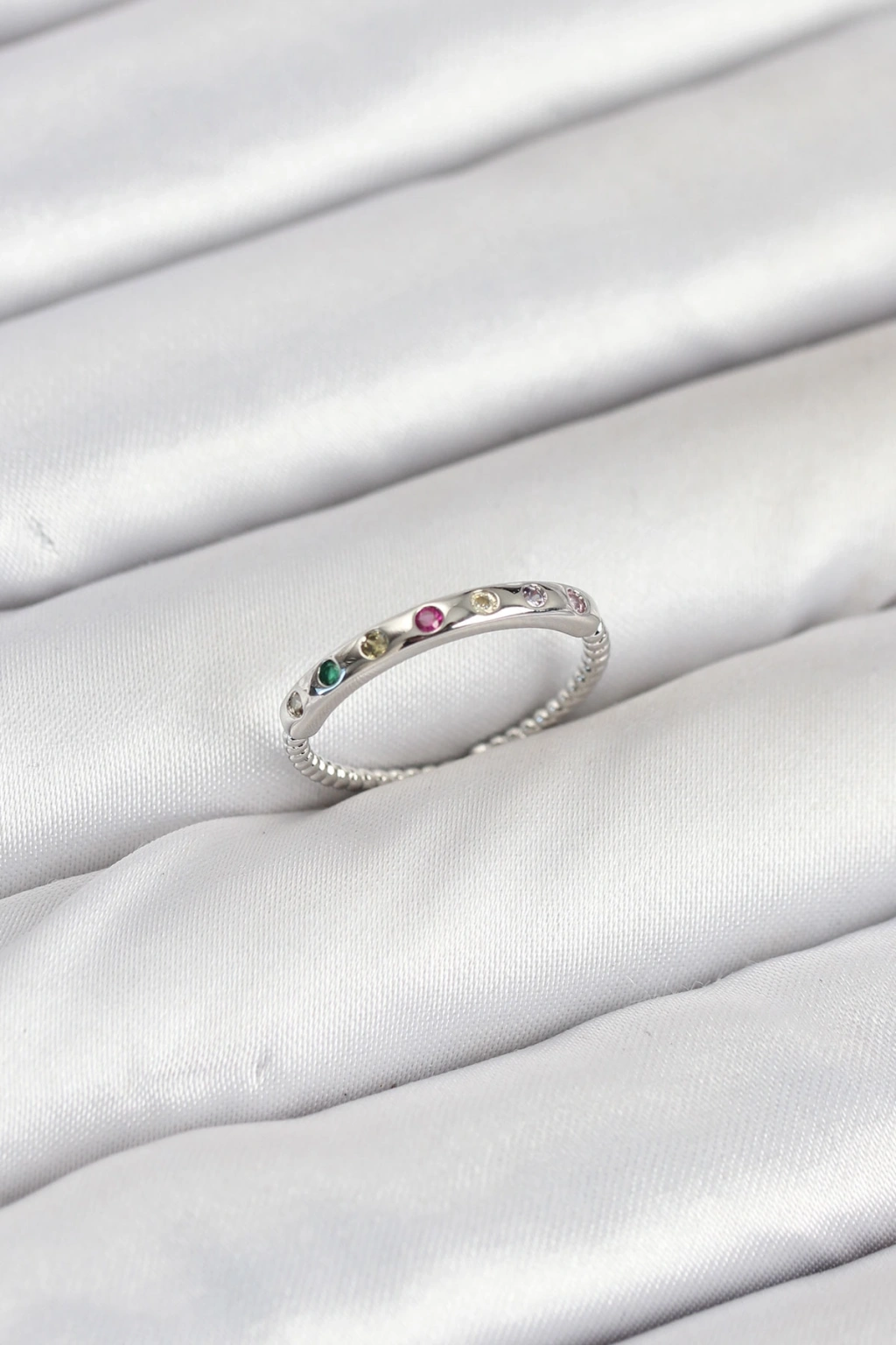 Erb Pirinç Gümüş Renk Renkli Zirkon Taşlı Kadın Yüzük