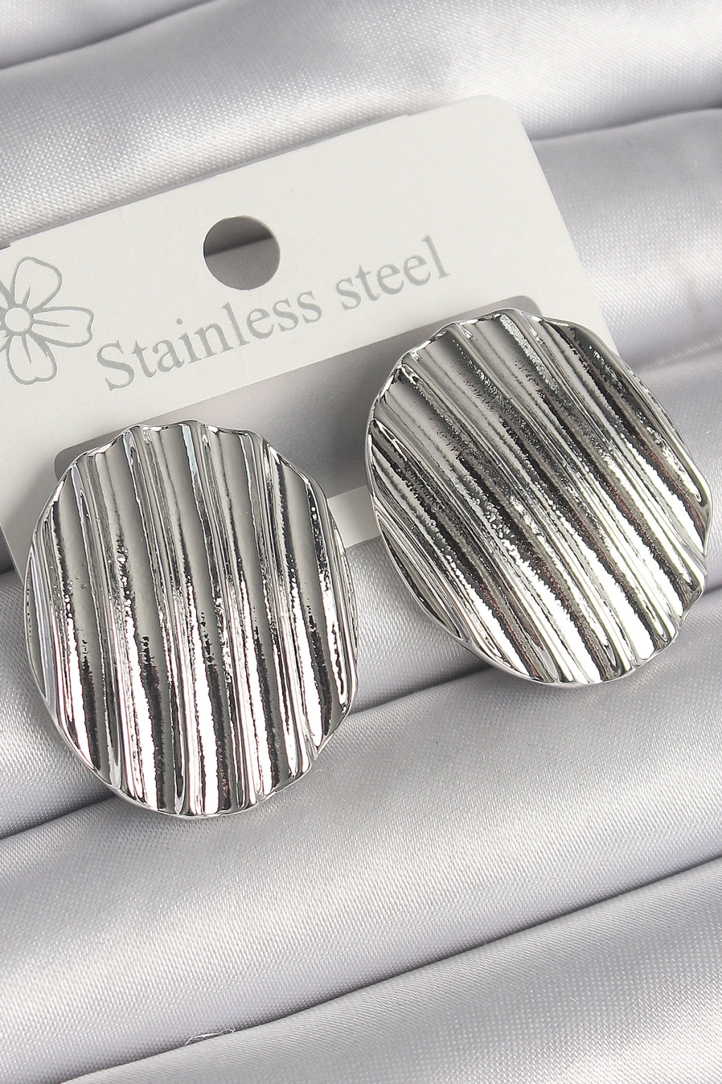 Erb Pirinç Gümüş Renk Sallantı İşlemeli Daire Plaka Model Kadın Küpe