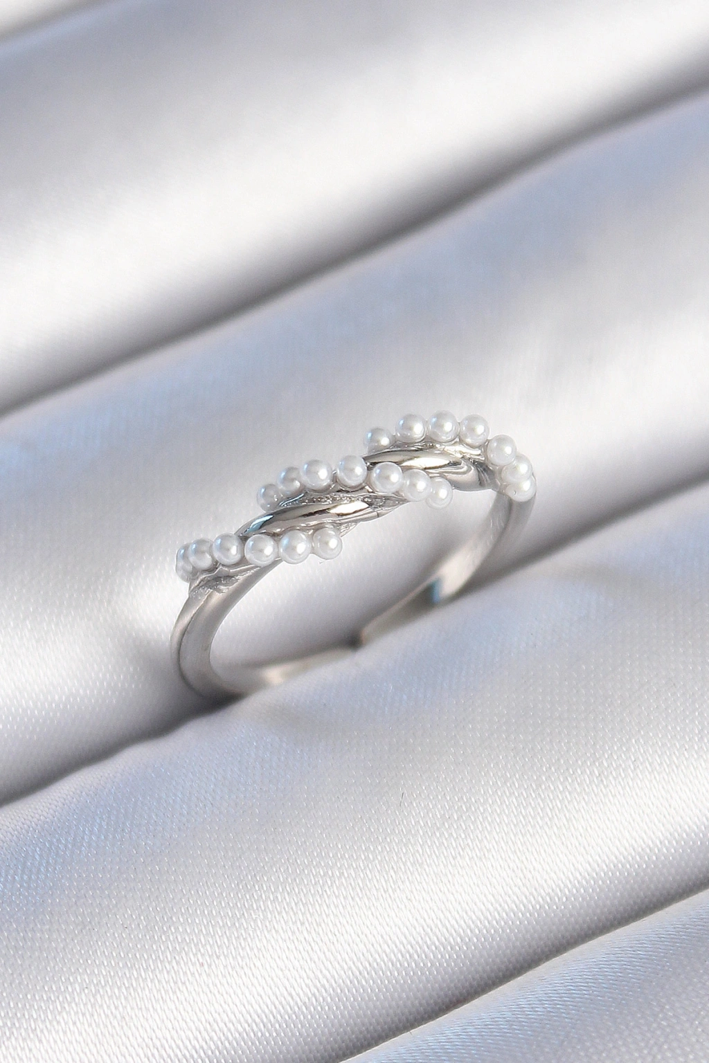 Erb Pirinç Gümüş Renk Sarmal İnci Model Kadın Yüzük