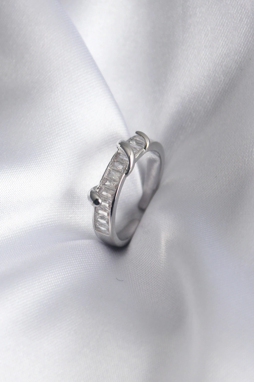 Erb Pirinç Gümüş Renk Su Yolu Zirkon Taşlı Kadın Yüzük