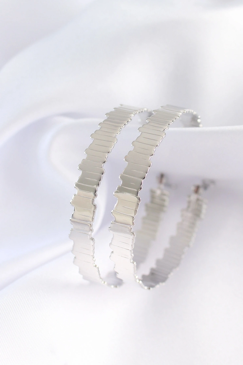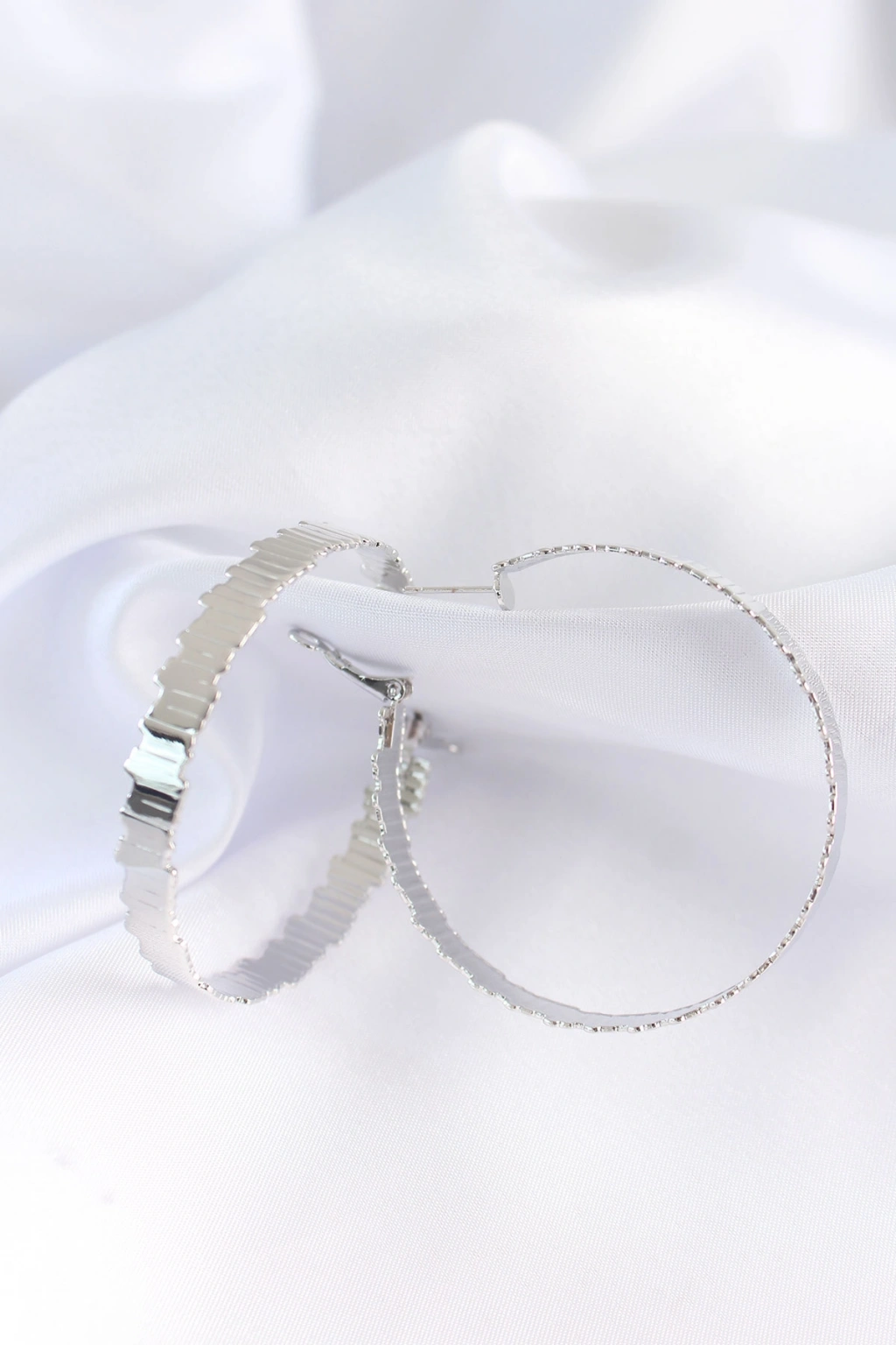 Erb Pirinç Gümüş Renk Tırtıklı Halka Küpe