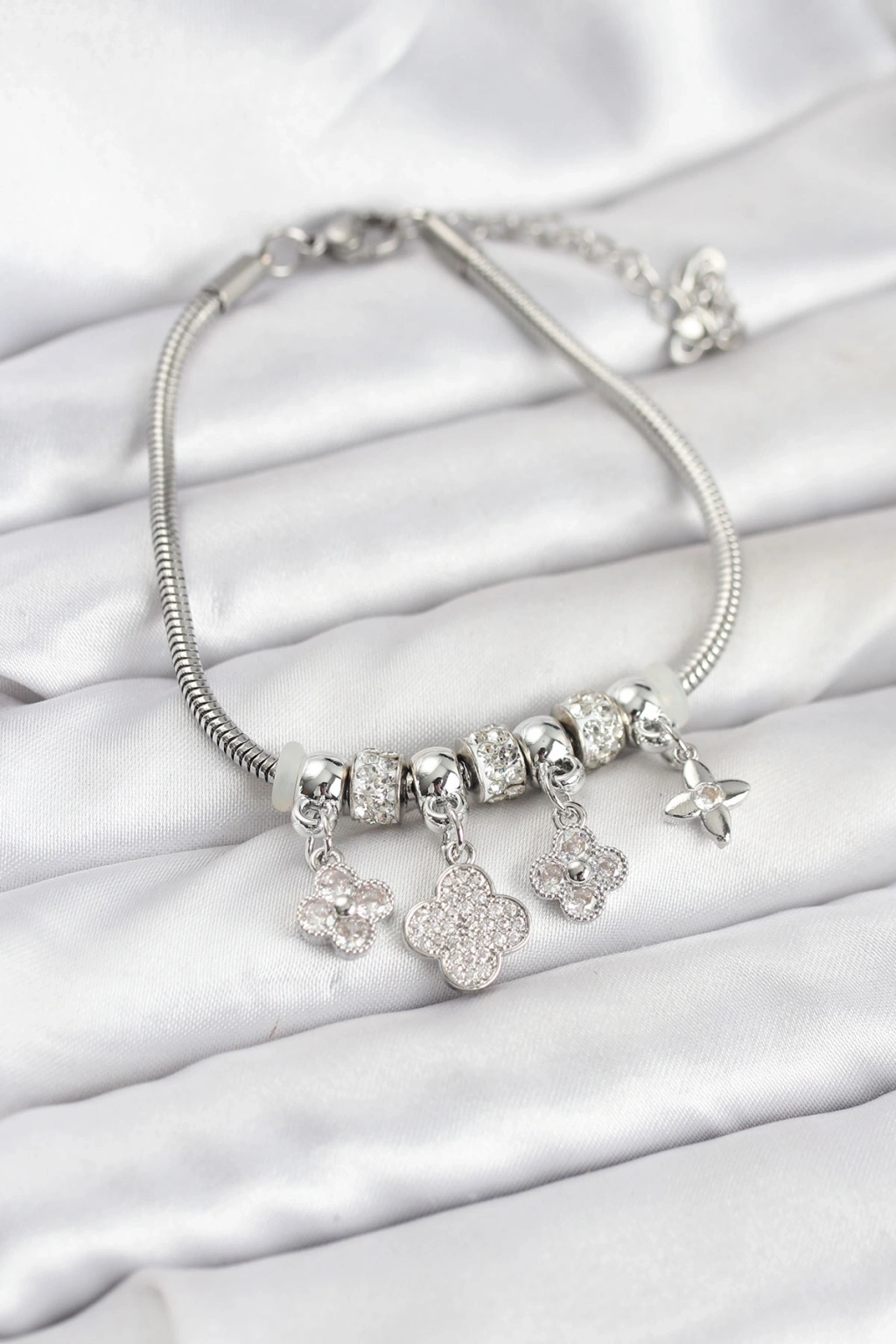 Erb Pirinç Gümüş Renk Yonca Model Kadın Bileklik