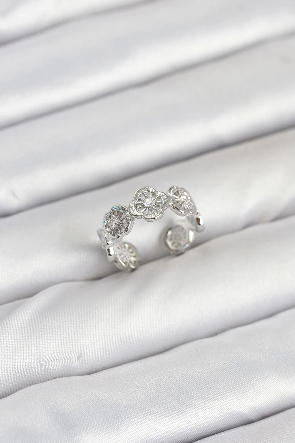 Erb Pirinç Gümüş Renk Yonca Model Kadın Yüzük