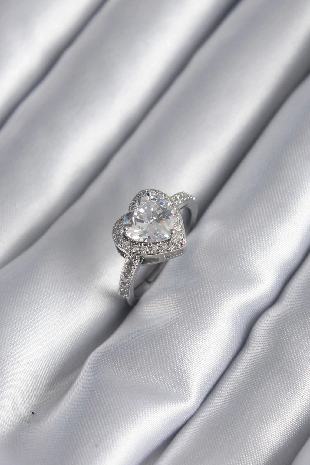 Erb Pirinç Gümüş Renk Zirkon Taş Kalp Charm Model Kadın Yüzük