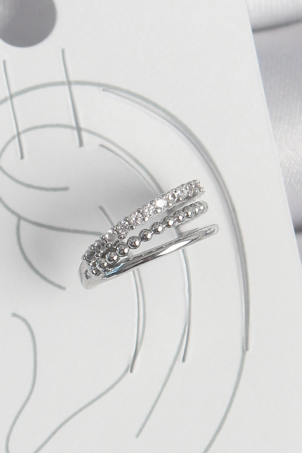 Erb Pirinç Gümüş Renk Zirkon Taşlı 3'Lü Sıralı Model Kadın Kıkırdak Küpe