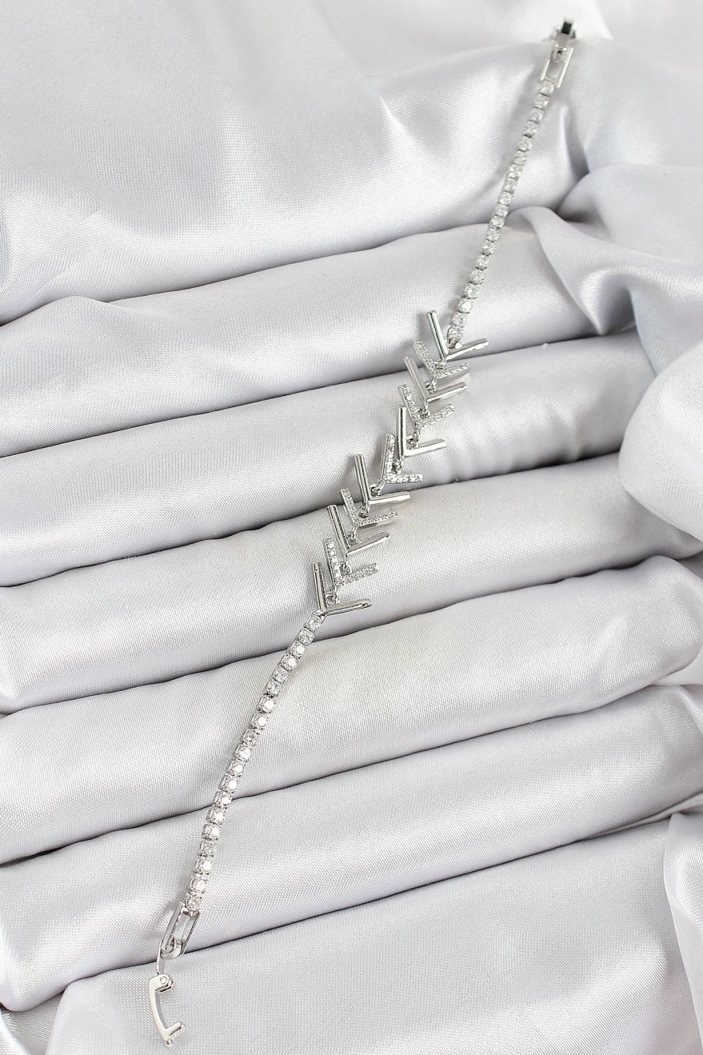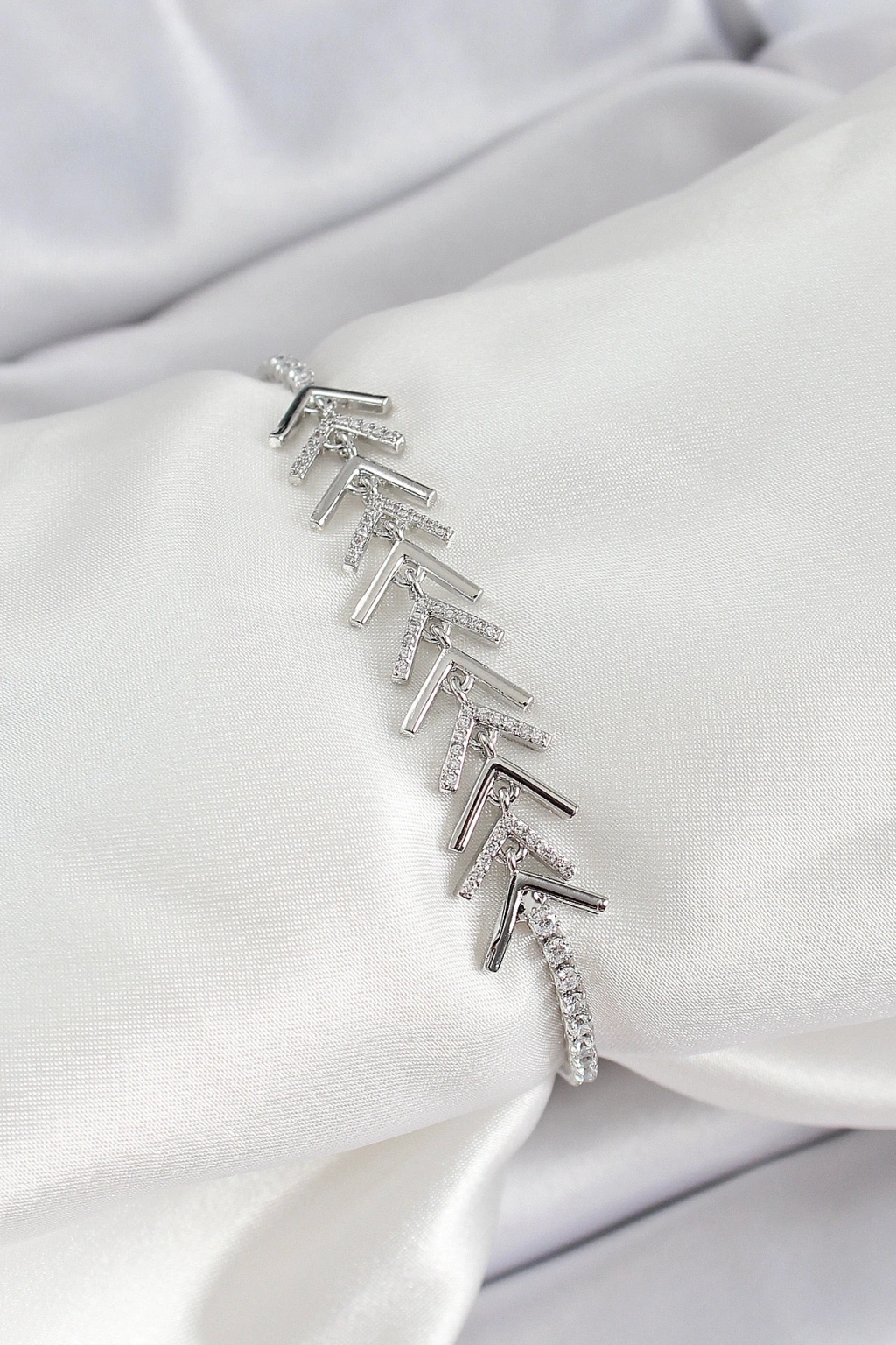 Erb Pirinç Gümüş Renk Zirkon Taşlı Balık Sırtı Kadın Bileklik