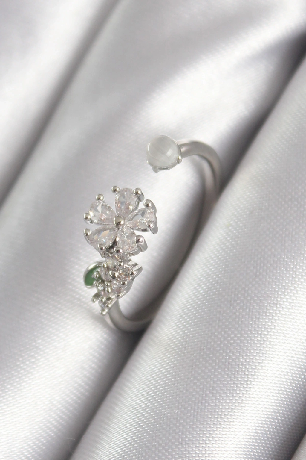 Erb Pirinç Gümüş Renk Zirkon Taşlı Çiçek Model Kadın Yüzük