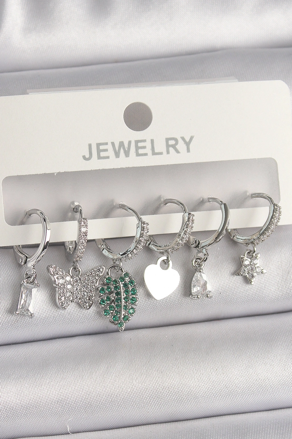 Erb Pirinç Gümüş Renk Zirkon Taşlı Çoklu Figür Kadın Küpe Seti