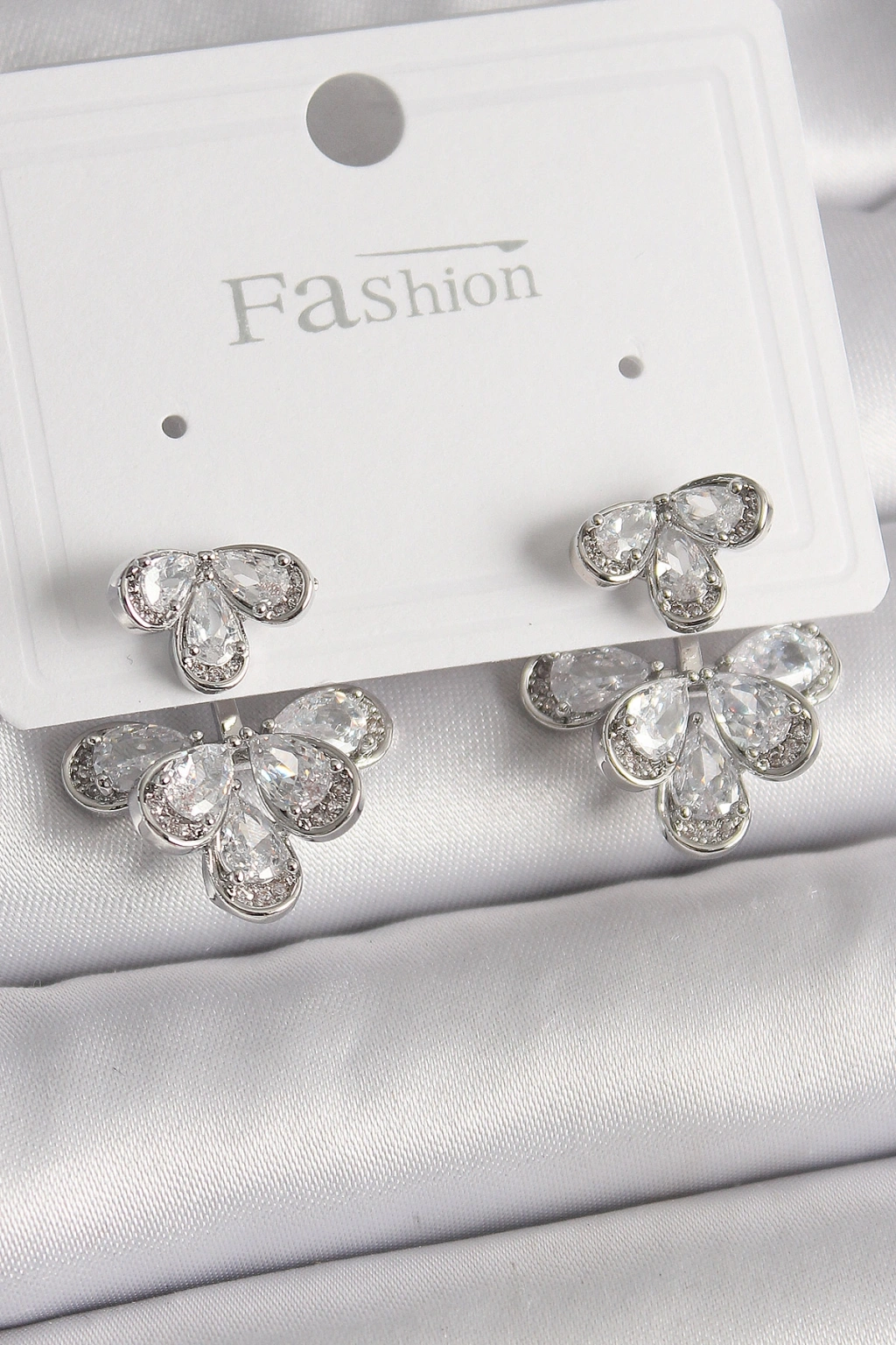 Erb Pirinç Gümüş Renk Zirkon Taşlı Damla Model Kadın Küpe