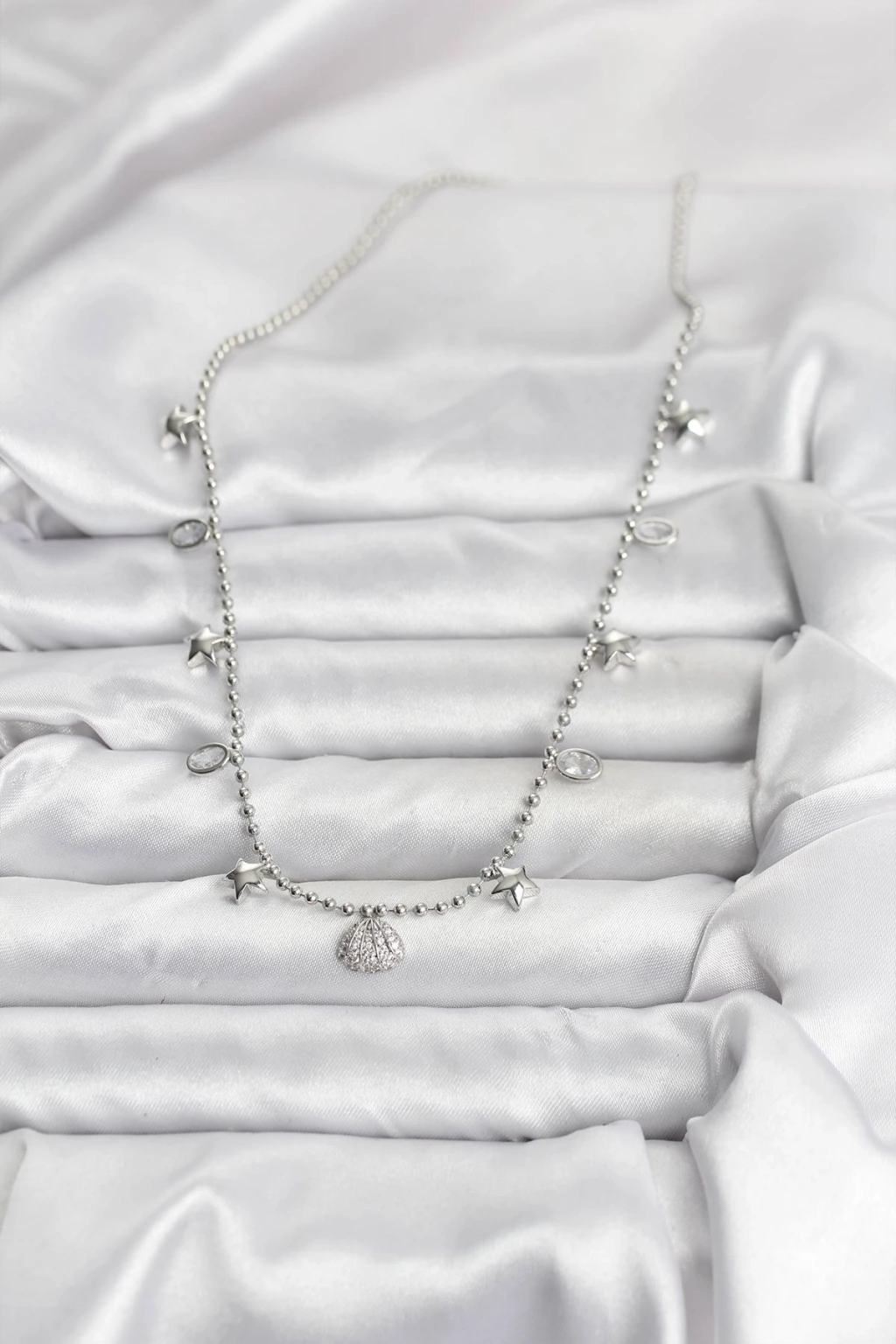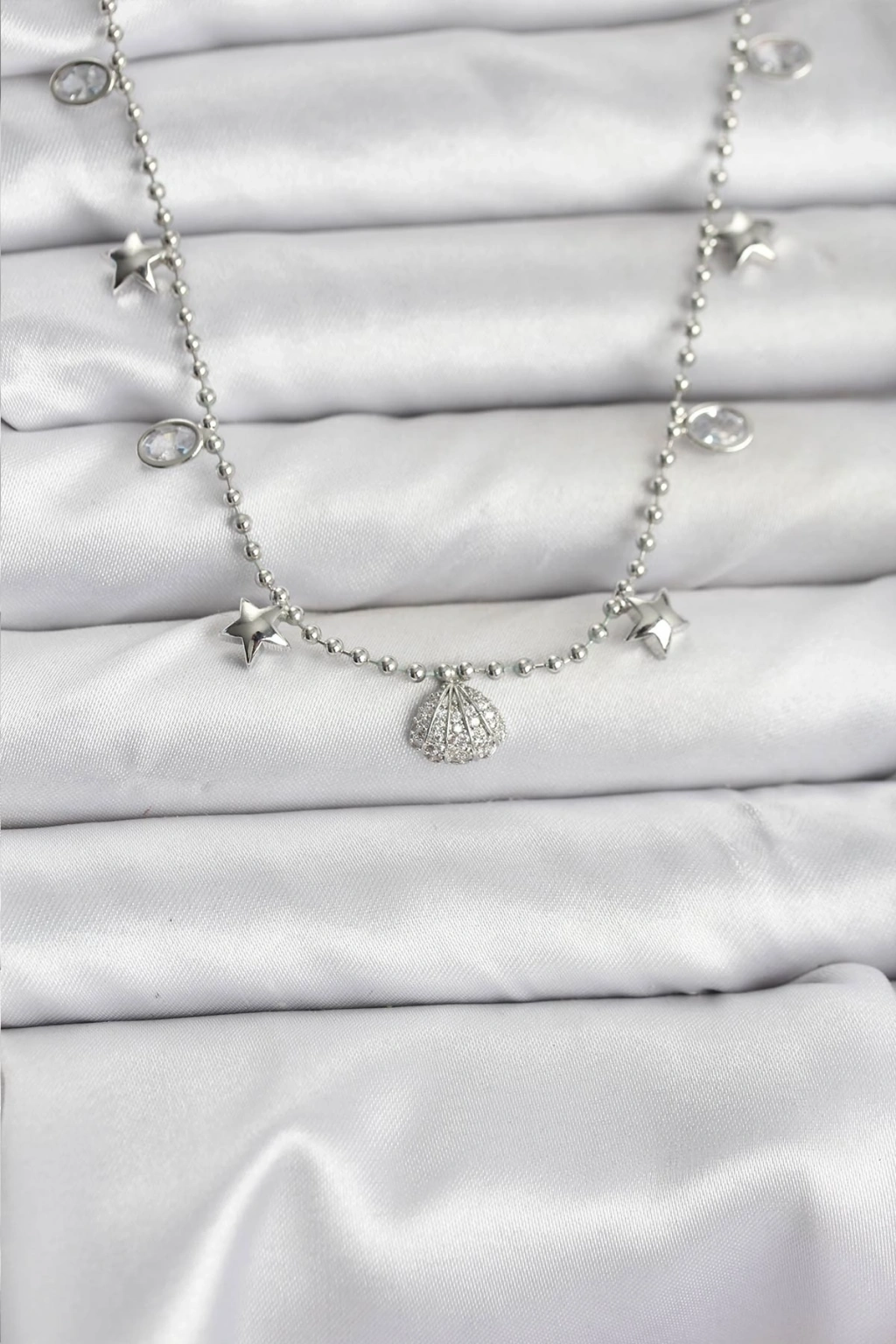 Erb Pirinç Gümüş Renk Zirkon Taşlı Deniz Kabuğu Model Kadın Kolye