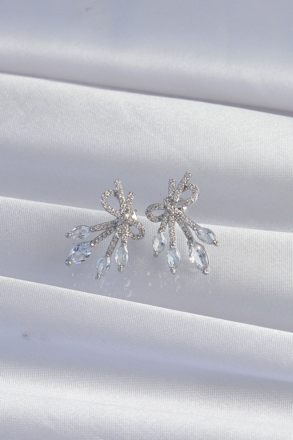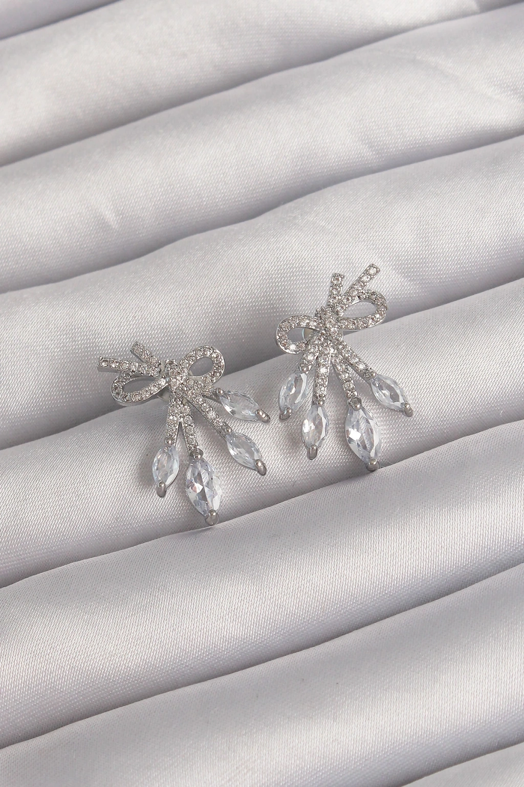 Erb Pirinç Gümüş Renk Zirkon Taşlı Fiyonk Küpe