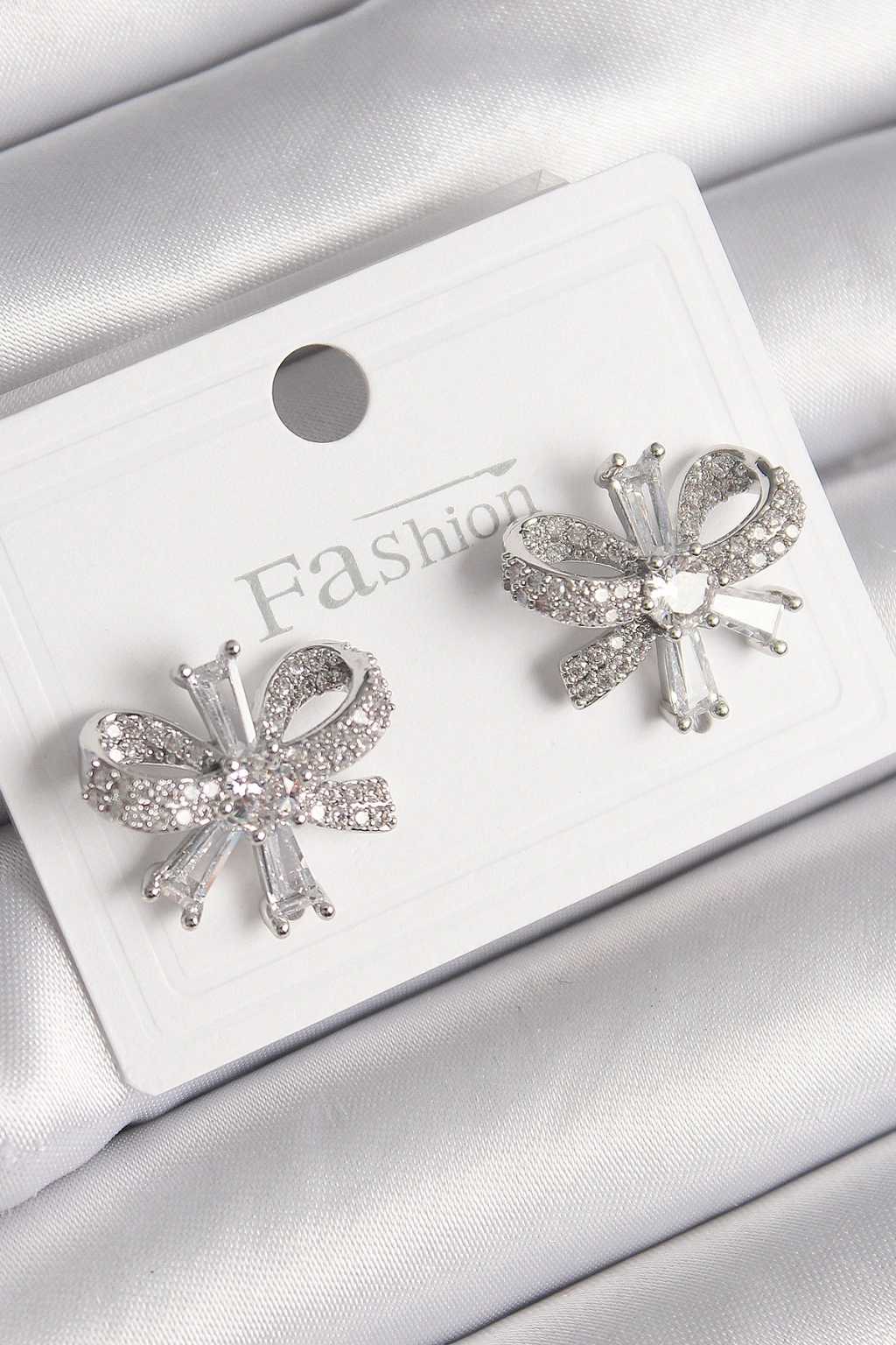 Erb Pirinç Gümüş Renk Zirkon Taşlı Fiyonk Model Kadın Küpe