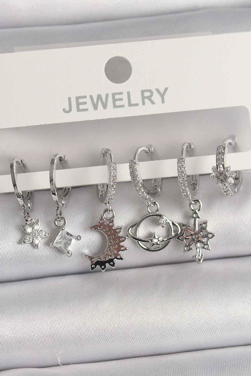 Erb Pirinç Gümüş Renk Zirkon Taşlı Gezgen Model Kadın Küpe Seti