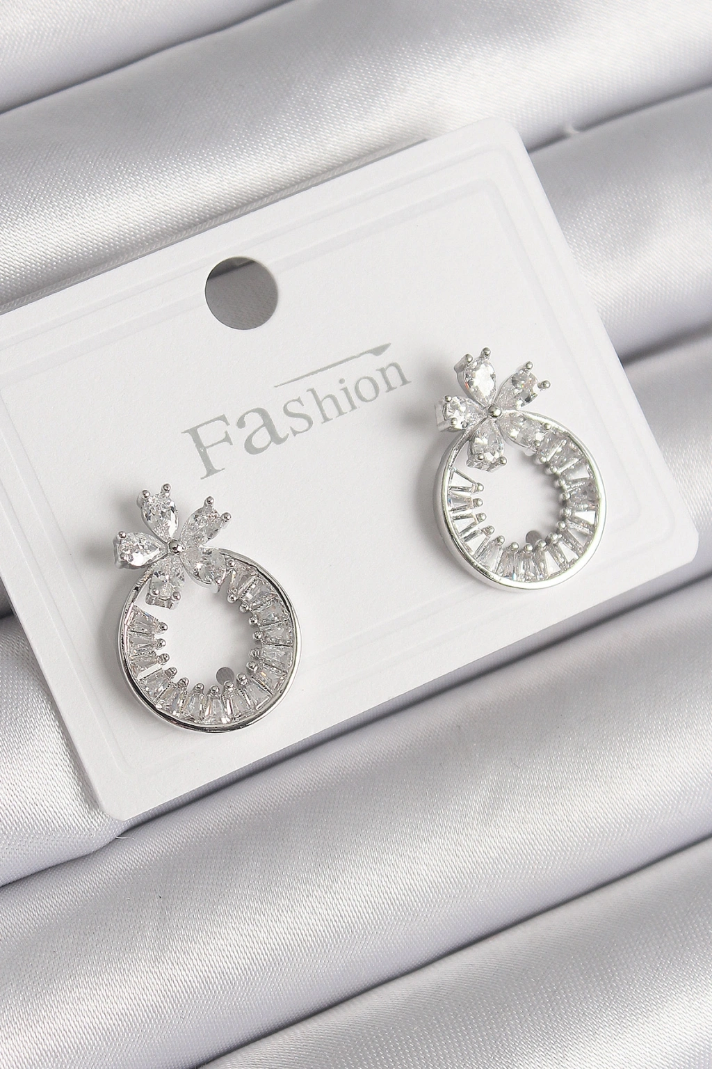 Erb Pirinç Gümüş Renk Zirkon Taşlı Halka Model Çiçek Figür Kadın Küpe