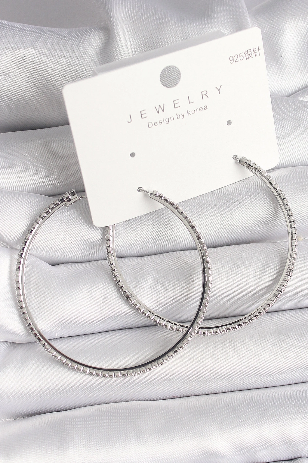 Erb Pirinç Gümüş Renk Zirkon Taşlı Halka Model Kadın Küpe