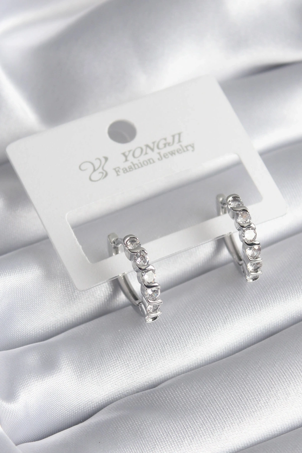 Erb Pirinç Gümüş Renk Zirkon Taşlı Halka Model Kadın Küpe